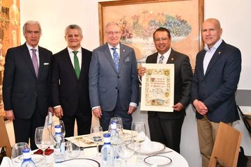 Acto de nombramiento de Caballeros de Honor de la Real Asociación de Caballeros del Monasterio de Yuste, a favor del Excmo. Sr. Almirante Jefe de Estado Mayor General de las FAS portuguesas, Excmo. Sr. Almirante y Vicepresidente de la FCIII, los Excmos. e Ilmos. Srs. Agregados de Defensa Iberoamericanos en el Reino de España, y la medalla de la Excelencia al Excmo. Sr. Presidente de la FCIII. Acto presidido por el Presidente, D. Gonzalo de Federico y Pérez